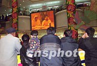 十日晚,WTO多哈会议将接纳中国加入世贸组织,北京市民在商场紧张兴奋地关注电视台的有关报道。中新社记者 张勤 摄