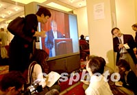 ![]() WTO多哈会议10日晚审议通过了中国入世,中国代表团团长石广生、副团长龙永图出席会议。中新社记者 钱兴强 摄 ![]() 世界贸易组织(WTO)第四届部长级会议10日晚审议通过了中国加入世界贸易组织。图为会议新闻中心的记者们在观看电视直播。中新社记者 钱兴强 摄