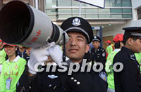 11日九运会开幕式前,广州警察对准备带入场的各种物品进行严格检查。中新社记者 毛建军 摄