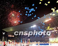 ![]() 中国第九届全国运动会十一日在广州奥林匹克体育中心隆重开幕,图为开幕式上演绎2008年奥运主题。中新社记者 毛建军 摄 |