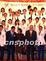 专程到广州出席全运会的香港特首董建华,十一日会见香港代表团,鼓励选手争取好成绩。中新社图 洪少葵 摄