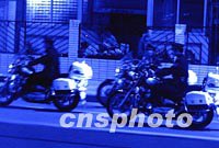 广州摩托骑警夜间在街上巡视,保证中国第九届全运会十一月在此间顺利举行。中新社记者 贾国荣 摄