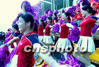 中国第九届全运会十二日在广东展开全面争夺战,少女啦啦队也登场遥相呼应。中新社记者 贾国荣 摄