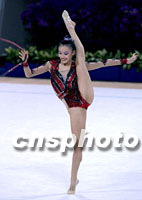 广西艺术体操小将米敏鸿十二日在中国第九届全运会的个人团体赛绳操比赛中。中新社图 洪少葵 摄