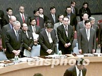 图文:联合国安理会发表声明哀悼纽约坠机死难者 2001年11月13日 07:12 ![]() 美东时间十二日上午,联合国安理会召开反恐外长会议。会议开始时,安理会全体起立默哀一分钟,为当日上午纽约肯尼迪机场飞机坠毁事件中的遇难者表示深切哀悼。中新社记者 陈建 摄