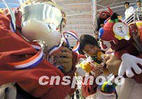 图:跳水比赛女子团体赛战罢 2001年11月13日 14:55 ![]() 解放军代表队的小将们手捧奖杯、吉祥物,分享获胜后的喜悦。九运会跳水比赛女子团决赛十三日战罢,广东、解放军、北京队分别摘取该项目金、银、铜牌。中新社记者 郑萍萍 摄 |