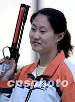 十一月十三日上午,北京队陈颖夺九运会女子十米气手枪射击赛金牌。中新社图 陈文 摄