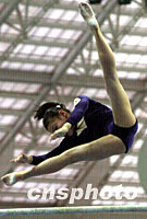 解放军队李琼在高低杆项目上的出色表现赢得了满堂掌声,九运会女子体操资格赛,十三日在广州体育馆开赛。中新社记者 梁永强 摄