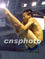 跳水名将余卓成在男子团体三米板决赛中以完美动作夺得该项目第一,为广东男队夺得跳水团体金牌立下一功。中新社记者 郑萍萍 摄