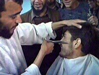 图:喀布尔理发店热了起来 2001年11月14日 11:11 ![]() 阿富汗北方联盟十三日控制首都喀布尔后,喀布尔市民纷纷涌入理发店,修剪保留了五年的胡须。塔利班在1996年占领喀布尔后,实行严格的伊斯兰教义,禁止男子剃掉胡须。中新社 |