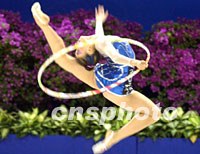 北京选手李佳在九运会艺术体操比赛上,圈操跳跃动作优美,腾飞如燕。中新社记者 洪少葵 摄