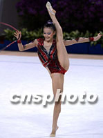 广西靓女朱敏鸿在九运会艺术体操比赛中,绳操技艺博得阵阵掌声。中新社图 洪少葵 摄
