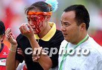 图:国家曲棍球队员张海英九运会赛中受伤 2001年11月14日 19:26 ![]() 国家女子曲棍球队队员张海英,十四日效力四川队参加九运会女子曲棍球四分之一决赛,在迎战吉林队的竞赛中受伤。中新社记者 任海霞 摄 |