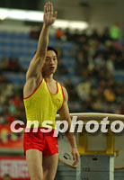 世界体操冠军杨威率领的湖北体操队在14日九运会男子体操团体决赛中冲冠失败,屈居亚军。中新社记者 贾国荣 摄