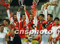 图文:东道主广东队勇夺九运会体操首金 2001年11月14日 23:52 ![]() 全国政协副主席马万祺14日在广州,向获得九运会男子体操团体冠军的广东队颁发奖杯。中新社记者 贾国荣 摄