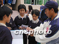 港将"抢七"杀进网球男双四强 有望问鼎(附图) 2001年11月15日 19:08 ![]() 香港网球选手十五日在第九届全运会上打入男双四强,唐敏聪赛后为支持者签名表示感谢。中新社图 卢峰 摄