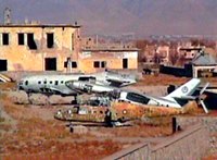 阿富汗北方联盟日前正采取各种措施,恢复喀布尔的正常生活。图为战后千疮百孔的塔利班喀布尔军事基地。