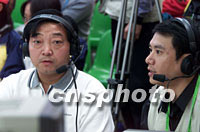 在十六日举行的中国第九届全运会射击比赛中,奥运名将许海峰为电视直播赛事做现场点评。中新社记者 毛建军 摄