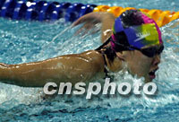 山东刘茵夺取九运会女子200米蝶泳金牌,该项决赛十六日晚在广州天河体育馆举行。中新社记者 梁永强 摄