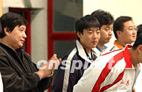 奥运射击冠军、老将王义夫(左)十七日在九运会男子50米自选手枪慢射比赛中,仅排名第四,“让位”给射击新秀。中新社图 张宇 摄