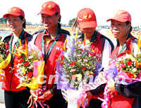 河南赛艇女选手被查出兴奋剂违规所获奖牌收回 2001年11月17日 19:08 ![]() 九运会十七日在广州宣布,河南赛艇运动员周辛荣兴奋剂检查结果违规,决定立即取消其已获得赛艇女子四人双浆第一名,收回奖牌。图为河南省代表团的女子四人赛艇队获奖时的情景。中新社记者 任海霞 摄