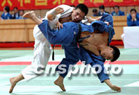 云南队柔道选手郝义〖兰〗18日在中山九运会男子66公斤级柔道决赛上,力战北京选手康凯,夺得金牌。中新社图 洪少葵 摄