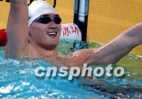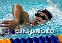 九运传真:张良破亚洲纪录 蒋丞稷再度夺冠 2001年11月18日 22:01 ![]() 上海选手蒋丞稷在十八日晚进行的九运会男子五十米自由泳决赛中,以二十二秒五六的成绩获得冠军。中新社记者 陈文 摄 ![]() 解放军队张良在十八日晚进行的九运会女子八百米自由泳决赛中,以八分二十六秒四八的成绩打破亚洲纪录并创造全国纪录。中新社记者 陈文 摄