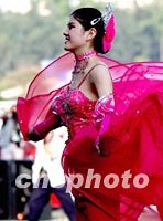 图:广州姑娘载歌载舞为全运会添彩
