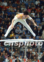 湖南体操选手李小鹏十九日晚在九运会男子体操单项决赛中获得双杠冠军。中新社记者 任海霞 摄