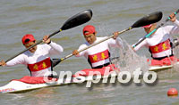 在二十日九运会皮划艇项目的预赛中,东道主广东选手实力强劲进入男子四人一千米皮艇赛决赛。中新社记者 陈文 摄