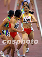 二十三日,在广州九运会田径比赛最后一天的金牌争夺战中,山东队夺走女子4乘400米接力冠军。中新社图 张宇 摄
