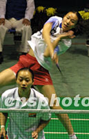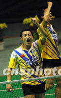 九运羽毛球又出三金 葛菲、顾俊“神话”不再 2001年11月23日 22:57 ![]() 在二十三日结束的羽毛球女子双打决赛中,一直被视为羽坛神话的葛菲、顾俊以大比分败在广东小将手下。中新社记者 郑萍萍 摄 ![]() 羽毛球男子双打比赛二十三日晚结束,来自上海的国家队选手王伟、张尉轻松摘取该项目金牌。中新社记者 郑萍萍 摄