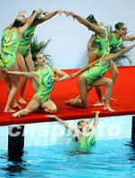河北姑娘在广州九运会花样游泳集体决赛中的出场造型别具特色。中新社记者 贾国荣 摄