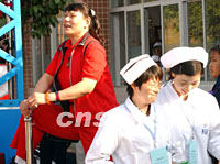 篮球明星郑海霞结束自己的九运会赛事后,二十四日来到现代五项男子个人赛现场,观看马术比赛。中新社图 张宇 摄