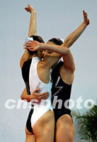 组图:江苏花样游泳获九运最后一枚金牌 2001年11月24日 21:21 ![]() 江苏花样游泳一对玉女二十四日晚在广州九运会的决赛如碧波论剑,夺得本届运动会的最后一枚金牌时,不禁相互拥抱致谢。中新社记者 贾国荣 摄 ![]() 江苏花样游泳一双美女如花木兰水上演武,玉臂似剑充满阳刚之气,二十四日在广州九运会笑傲碧波,高分夺冠。中新社记者 贾国荣 摄