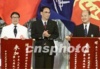 中国第九届全运会二十五日晚在广州落下帷幕,香港与澳门体育代表团获得国家体育总局颁发的纪念锦旗。中新社记者 毛建军 摄