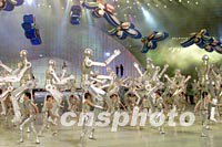 组图:九运会闭幕式文艺晚会 2001年11月26日 08:55 ![]() 九运会闭幕式文艺晚会《超越梦想》上翩翩起舞的美少女。中新社记者 梁永强 摄 ![]() 中国第九届全运会二十五日晚在广州落下帷幕,图为闭幕式上的“机器人”表演。中新社记者 毛建军 摄