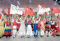 ![]() 中国第九届全运会二十五日晚在广州落下帷幕,身着中国各民族服装的青年在闭幕式上载歌载舞,庆祝新世纪首次全运会圆满成功。中新社记者 毛建军 摄