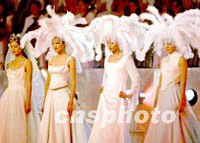 二十五日晚,百余名模特在九运会闭幕式大型文艺晚会上表演时装《彩云追月》。中新社记者陈文摄