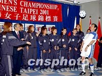 台北市长马英九11月29日一身足球运动装,亲自为参加亚洲杯女足赛的中国台北队壮行。中新社记者 任晨鸣 摄
