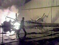 图:以发动对巴勒斯坦的报复行动 2001年12月04日 15:55 ![]() 以色列三日向加沙地区发射十四枚导弹,对此前以境内发生的一连串爆炸事件进行报复,巴勒斯坦民族权力机构主席阿拉法特的住所、办公室及两架直升机在袭击中被摧毁。图为消防人员在被摧毁的直升机前灭火。 |