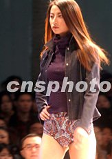 正在北京举办的2001中国国际时装周上,三十日举行题为“我的空间2002春夏张晓慧时装发布会”。图为模特女性展示休闲作品。中新社传真 钱兴强 摄