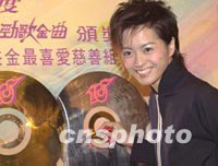 组图:梁咏琪出席十大劲歌金曲颁奖典礼 2001年12月11日 10:04 ![]() 无线电视「2001年度十大劲歌金曲颁奖典礼」10日在香港举行记者会,众多歌星均出席盛会,歌星梁咏琪在大型CD上签名。颁奖礼将于明年1月13日晚假红馆举行,门票收益将拨捐公益金作慈善用。中新社传真 邓庆乐 摄 ![]() 歌星小雪10日在香港出席无线电视「2001年度十大劲歌金曲颁奖典礼」记者会,虽然圣诞节还有十多天,但小雪的打扮极具圣诞气氛。中新社传真 邓庆乐 摄