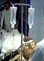 希伯伦一名受伤的巴勒斯坦人十一日在医院接受治疗。以色列军队十日出动武装直升机向希伯伦发射火箭炮,造成两名小孩死亡,五人受伤。