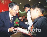 图:胡启立为少年儿童发明获奖者颁奖