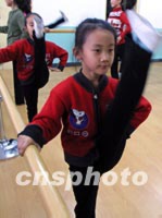 北京小学生在学期末刻苦训练舞蹈基本功,以备参加春节期间的文艺演出。中新社记者 宋吉河 摄