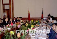图:朱镕基与孟加拉总理卡莉达·齐亚举行会谈 2002年01月12日 16:33 ![]() 正在孟加拉进行正式访问的中国总理朱镕基,当地时间十一日下午在孟加拉国首都达卡总理官邸与孟加拉总理卡莉达·齐亚举行会谈,就双边关系和共同关心的国际与地区问题广泛交换意见。中新社记者 张朔 摄 ![]() 正在孟加拉进行正式访问的中国总理朱镕基,当地时间十一日下午在孟加拉国首都达卡总理官邸与孟总理卡莉达·齐亚举行会谈,就双边关系和共同关心的国际和地区问题广泛交换意见。中新社记者 张朔 摄