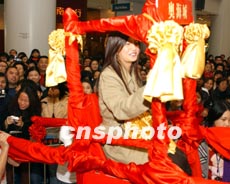 图文:赵薇香港坐花轿宣传新片 笑言很安全 2002年02月04日 16:00 ![]() 中新网香港2月4日消息:赵薇为新戏《天下无双》做宣传昨日赴港,安排她与王菲乘坐花轿到场,而两男主角梁朝伟及张震,一个踢轿门、一个接花球。虽说赵薇近日很少公开露面,但她的影迷仍热情未减。 据香港媒体报道,这次是她自“遇袭”之后首度在香港公开露面,加上又人多,问到她是否会感压力及害怕?赵薇则轻松的答:“不会,谢谢王菲、梁朝伟一直支持我,压力全在他们身上罢了”,而且觉得身在香港也比较很安全。 相关报道:图:梁朝伟王菲赵薇张震联手在香港推介《天下无双》 相关报道:《天下无双》首映藏玄机 赵薇 相关报道:图文:《天下无双》拍竣 王菲赵薇粉碎不和传言 相关报道:图文:历经波澜“小燕子”赵薇片场无声对记者 相关报道:赵薇有没有被泼粪?香港某杂志刊登清晰照片 相关报道:赵薇公开致歉 称军旗装事件是“无心之失”