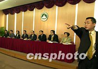组图:澳门赌牌竞投八日宣布批给结果 2002年02月09日 09:47 ![]() 澳门博彩竞投委员会八日宣布赌牌批给结果,图为竞投委员会主席谭伯源等在新闻发布会上答记者问。中新社传真 宗金柱 摄 ![]() 受到世界瞩目的澳门赌牌竞投于八日向公众宣布批给结果,图为竞投委员会主席谭伯源等在新闻发布会上答海内外记者问。中新社传真 宗金柱 摄