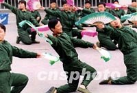 图:福建女武警战士歌舞彩排贺新春